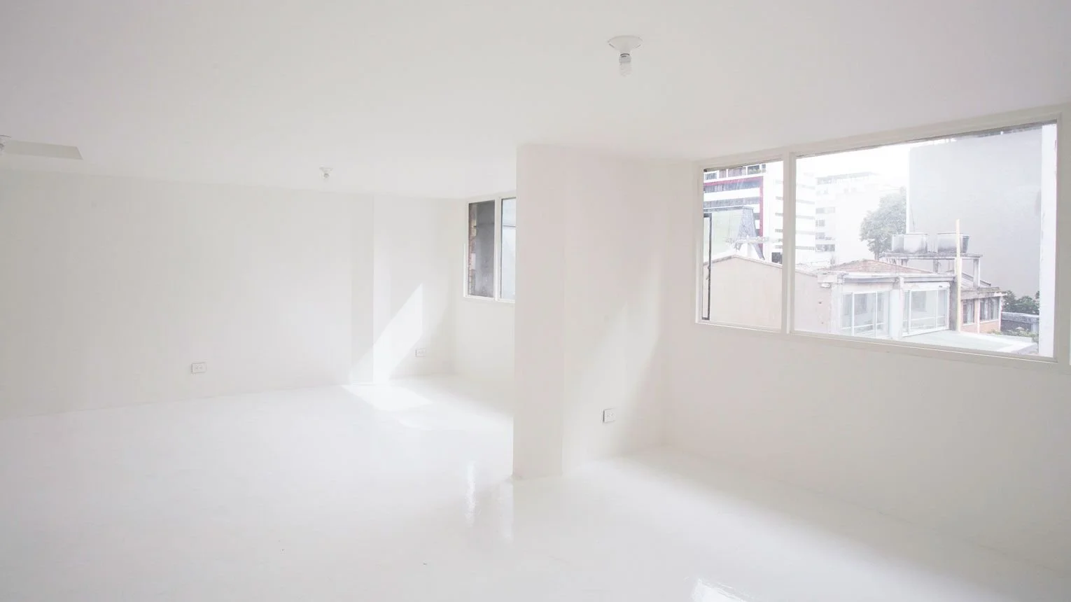 Sus exiguos detalles acompañado del color blanco como representante del espacio; permiten que una pequeña área como esta se amplíe significativamente y funcione competentemente para las diferentes tareas de un estudio de fotografía.
