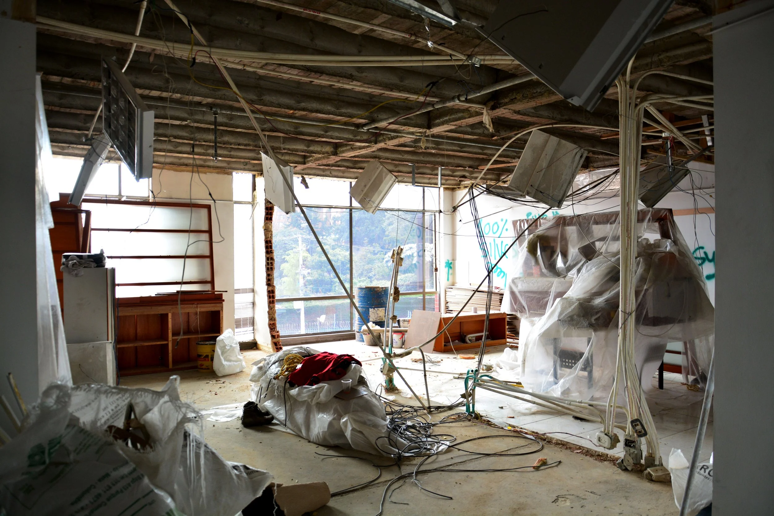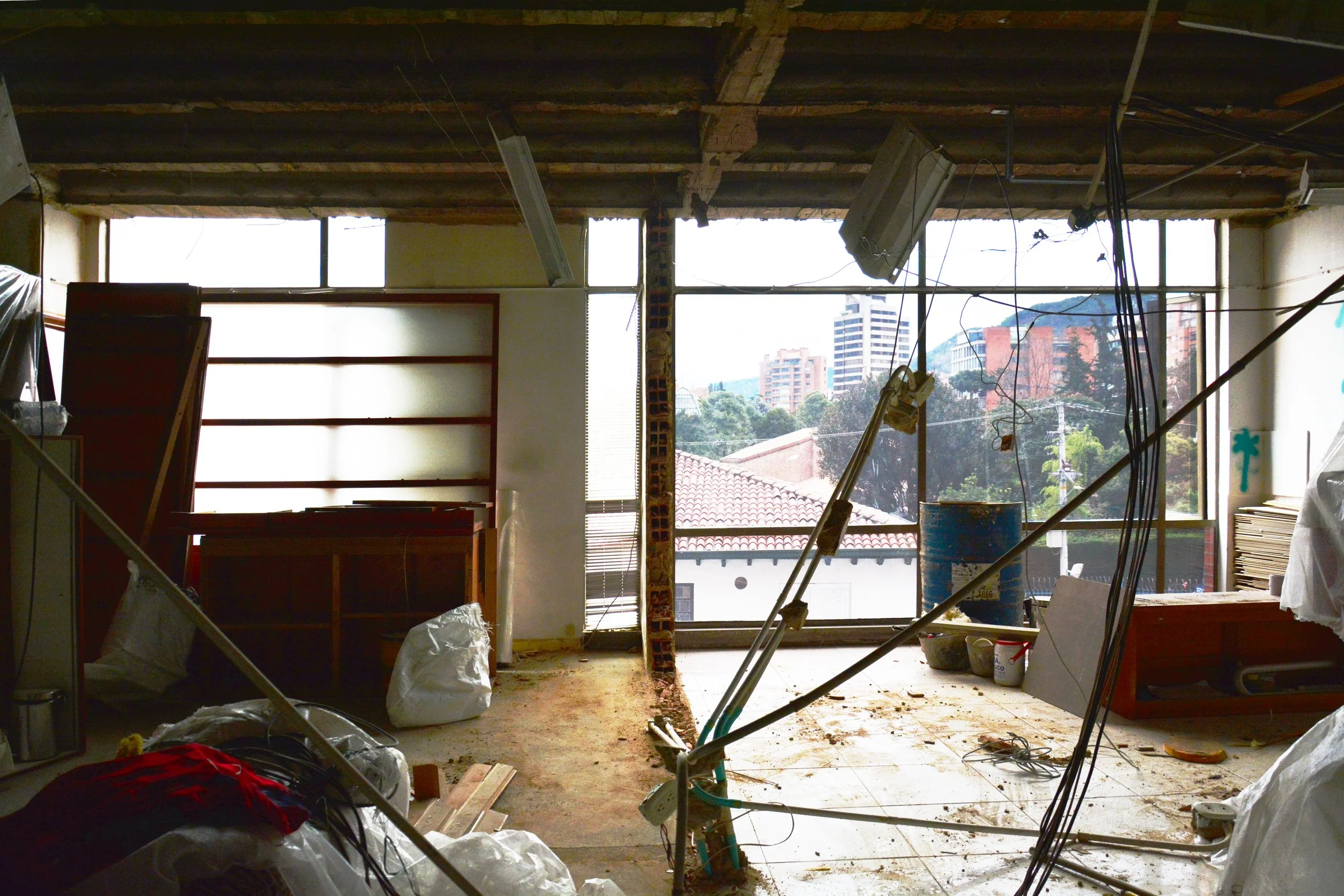 Todo comienza con una idea. Al realizar la demolición hemos tumbado todos los muros e instalaciones de estos dos espacios dejando nuestro lienzo en blanco, cuando lo realizamos alcanzamos a ganar 70 cm en altura, cm que no teníamos presupuestados. Este edificio cuenta con una fachada de vidrio continua por lo que al ganar en altura también ganamos mucha luz natural.